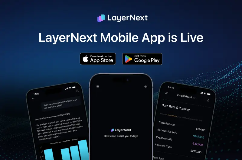 The app is free to download, with access to AI bookkeeping and CFO features based on your selected LayerNext plan.