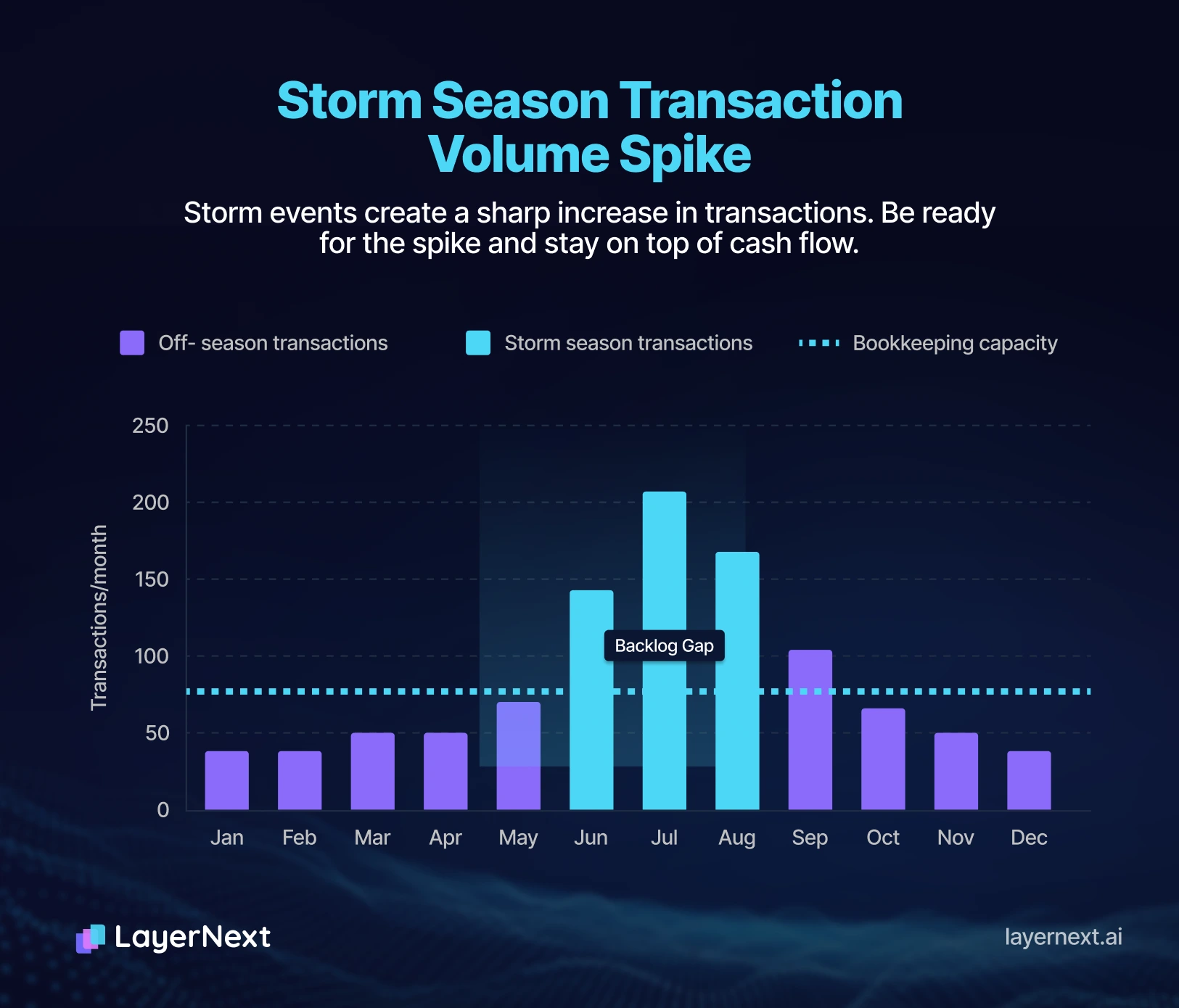 After a major weather event, transaction volume spikes exactly when the operations team is at maximum capacity. Crews are being dispatched. Adjusters are being met. Materials are being ordered. The bookkeeping backlog builds in the background.
